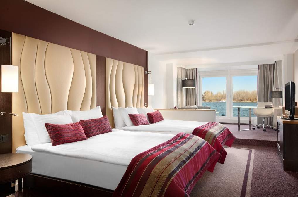 Este moderno hotel está perfectamente situado para descubrir Viena, con una impresionante ubicación frente al río. El cliente disfrutará de fantásticas vistas al pintoresco río Danubio. El establecimiento se encuentra a tan solo 20 minutos en coche del aeropuerto internacional de Viena y a poca distancia de la estación de metro Stadion. Asimismo, el centro de Viena se encuentra a poca distancia. Las modernas habitaciones están decoradas con elegancia y tienen todo lo que el cliente puede necesitar para sentirse como en casa. El huésped podrá disfrutar con los amigos de una comida al aire libre en la maravillosa terraza frente al río del elegante restaurante, o tomarse un cóctel, vino de la región o cerveza local en el salón. Los clientes podrán hacer ejercicio en el gimnasio, relajarse en la sauna o jacuzzi o nadar en la piscina exterior admirando las maravillosas vistas al río Danubio. Este establecimiento de lujo es un excelente lugar de reunión en Viena, con 13 salas de horario flexible para reuniones y un centro de negocios abierto las 24 horas, para la mayor comodidad de los huéspedes.